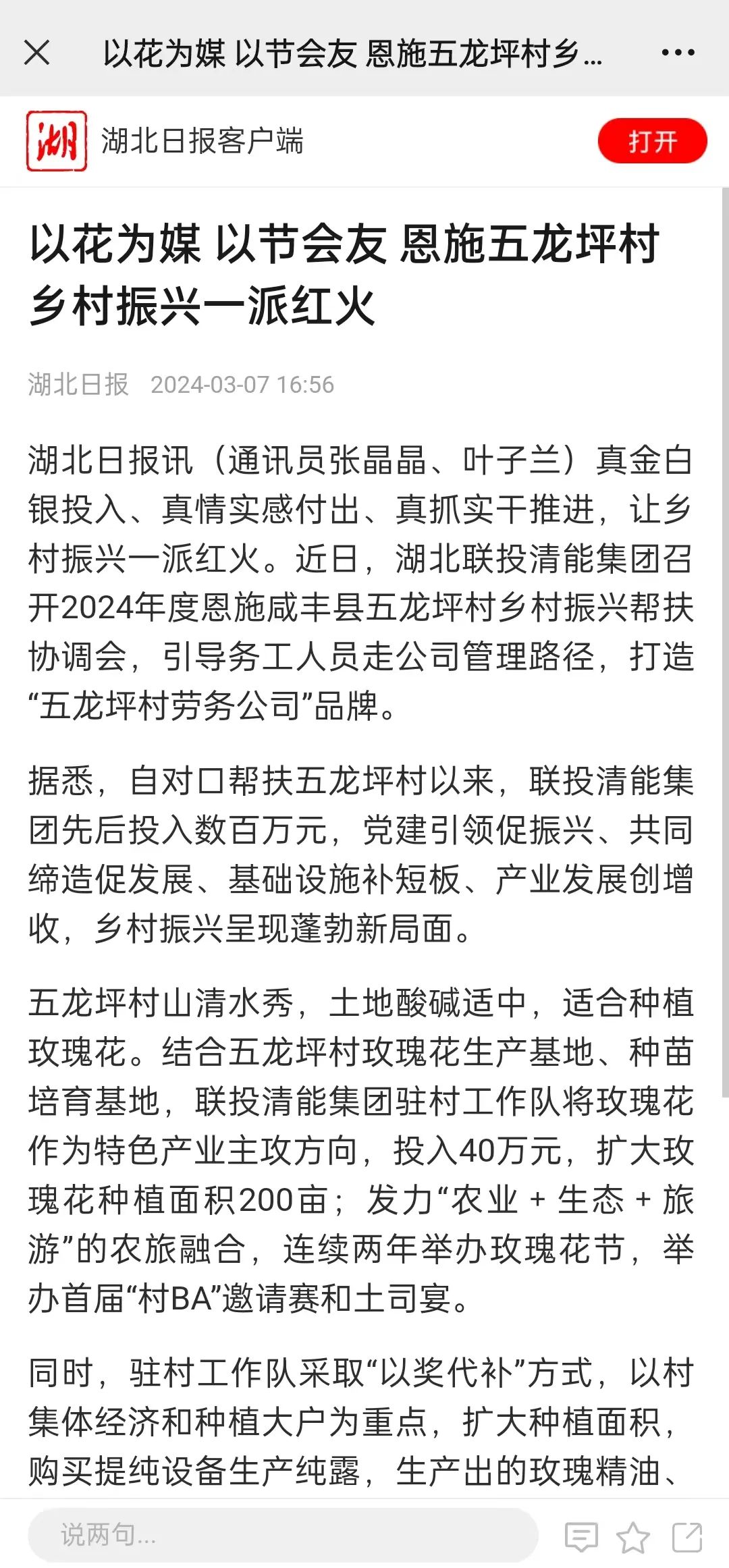 此外,湖北日?qǐng)?bào)、長(zhǎng)江日?qǐng)?bào)、長(zhǎng)江云、黨員生活雜志也關(guān)注湖北聯(lián)投清能駐村幫扶最新工作動(dòng)態(tài)。