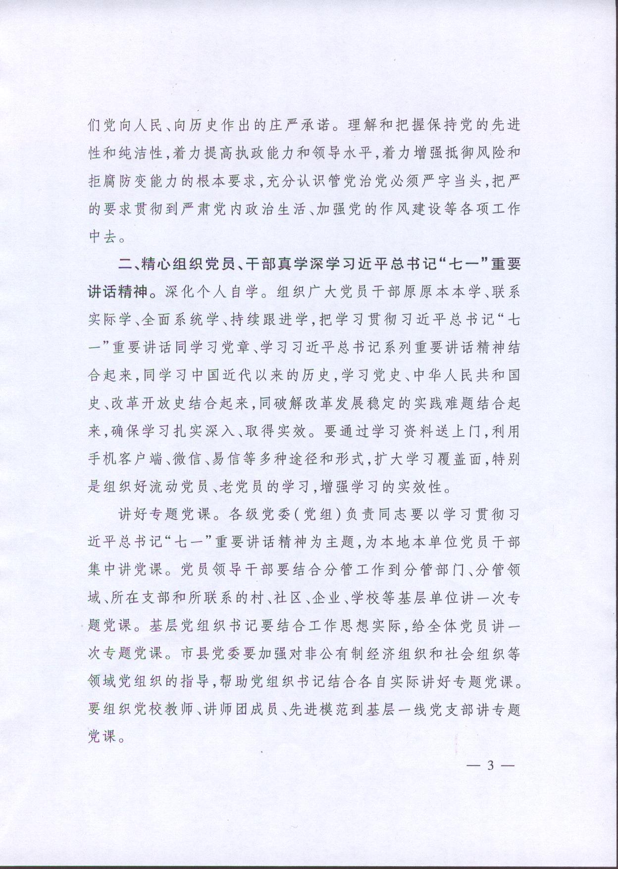 關(guān)于在“兩學(xué)一做”學(xué)習(xí)教育中認(rèn)真貫徹習(xí)近平總書記“七一”重要講話精神的通知